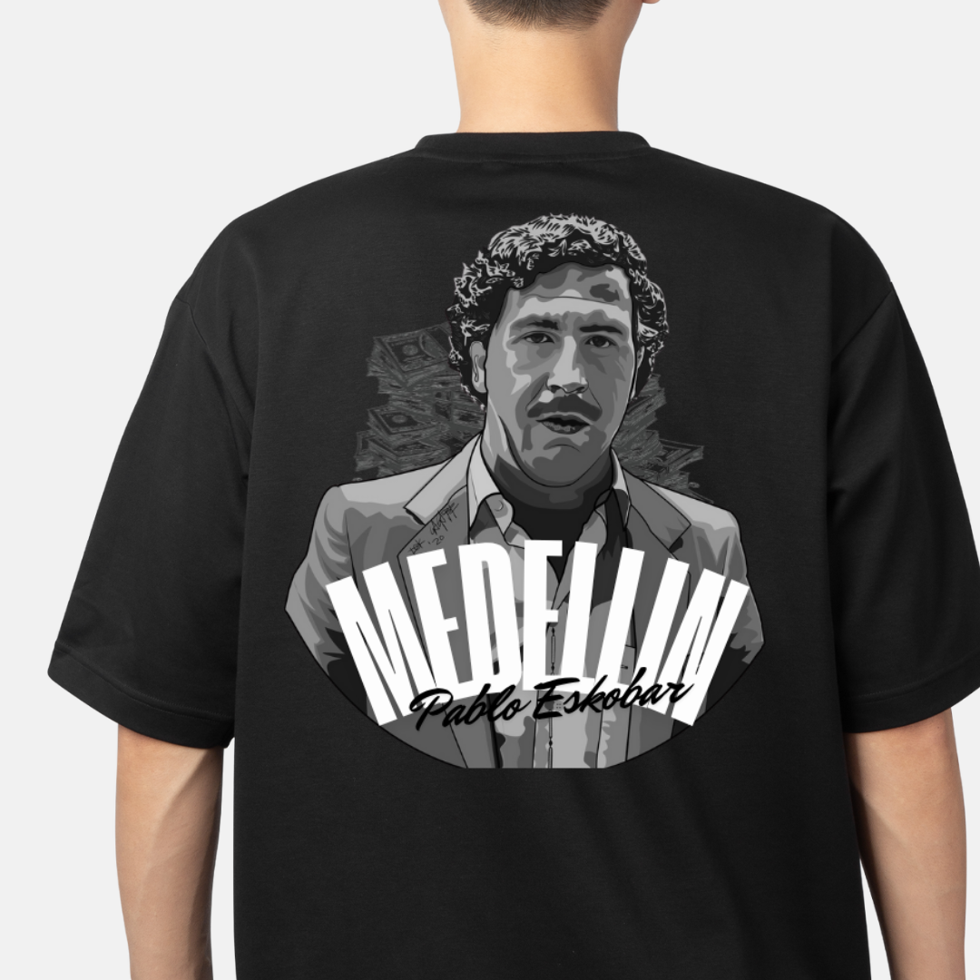 На гърба е отпечатана детайлна черно-бяла илюстрация, а отпред – минималистичен надпис “Plata o Plomo”, символ на решителност и характер.